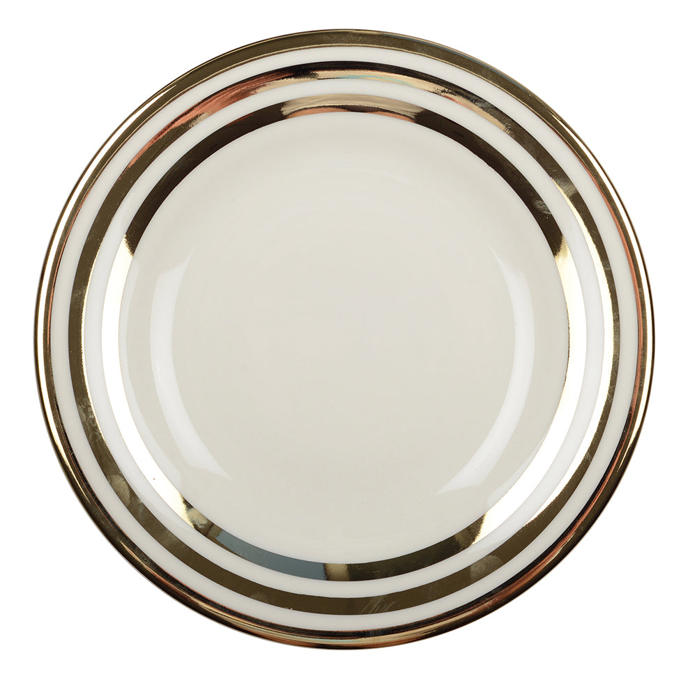Gefertigt aus edlem Glas in einem sanften Creme-Ton und veredelt mit einem feinen Goldrand, bringt er Wärme, Licht und Eleganz auf jede gedeckte Tafel.