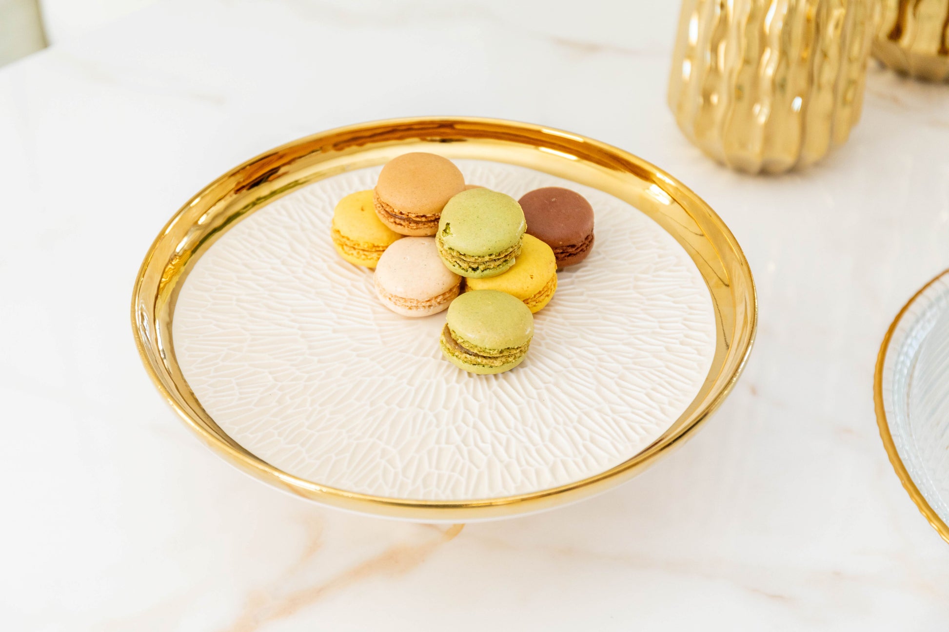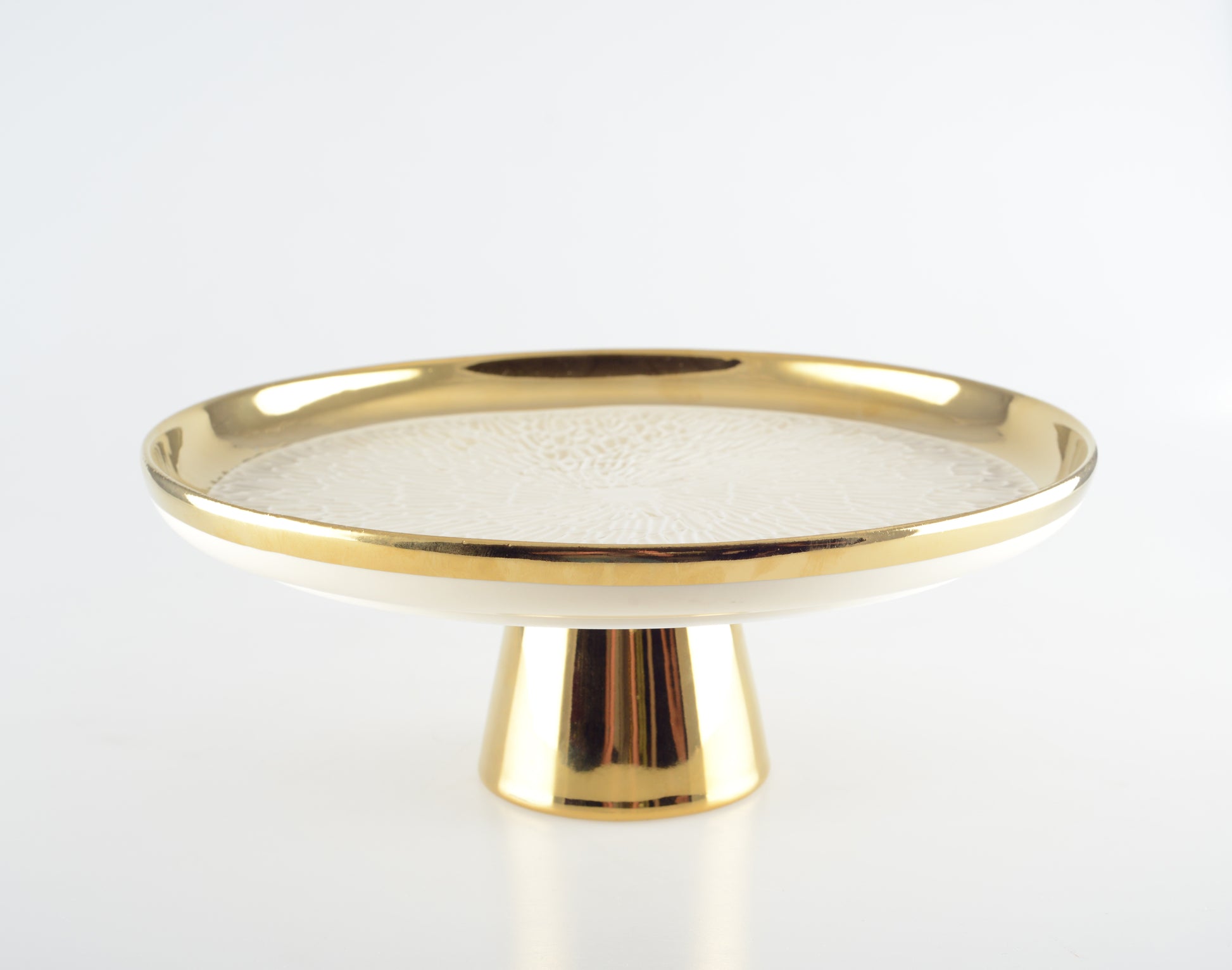 Gefertigt aus edler Keramik und veredelt mit zarten Golddetails, setzt sie Torten, Kuchen und Desserts besonders elegant in Szene.